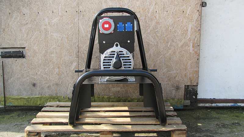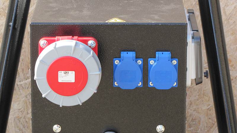 | Wyposażenie | 4-polowy automat bezpiecznikowy, zabezp. różnicowo-prądowe, gniazdo 3-fazowe 63A, 2 gniazda 1-fazowe 16A, 2 wyłączniki termiczne 230V, wyzwalacz podnapięciowy, pomiar mocy, pomiar napięcia, pomiar częstotliwości, pomiar prądu, licznik motogodzin, tulejki z zawleczkami mocującymi, |