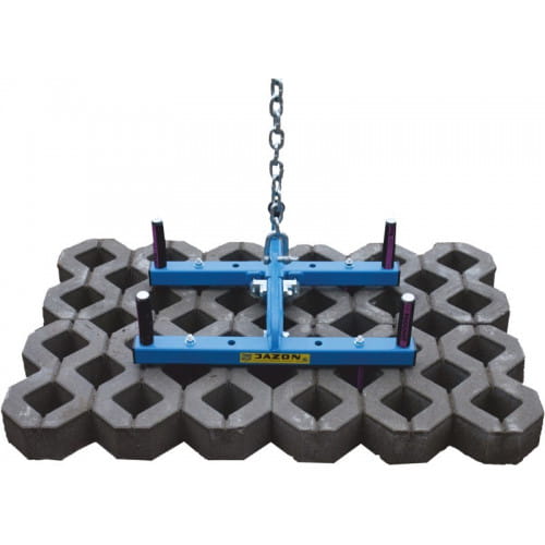Chwytak służy do przewożenia i ustawiania płyt ażurowych oraz płyt JUMBO za pomocą większości maszyn podnoszących typu koparki, ładowarki czy wózki widłowe.