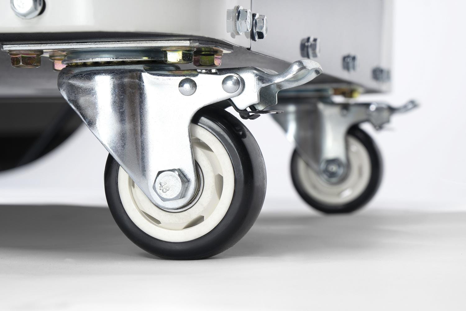 Pozwalają szybko zmienić kierunek, znacznie ułatwiając transport agregatu. Koła wyposażone są w blokadę, która umożliwia bezpieczne unieruchomienie maszyny podczas pracy.