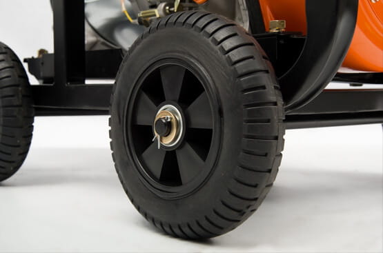 Koła wykonane są z gumy pełnej ze stalową konstrukcją, łożyskowane, odporne na przebicie, niewymagające pompowania lub konserwacji w ciągu całego okresu eksploatacji. Zwiększona średnica kół ułatwia przemieszczanie agregatu po nierównej powierzchni.