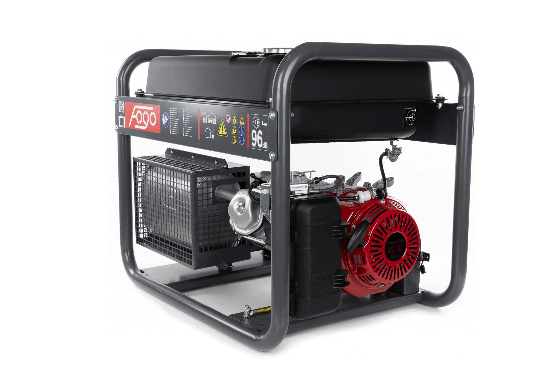 Agregat prądotwórczy polskiej firmy FOGO, 6.2 kW 230V, z silnikiem HONDA GX390, duży zbiornik paliwa, rozruch ręczny linkowy i elektryczny.