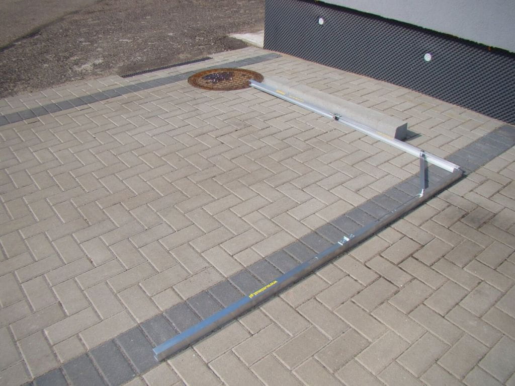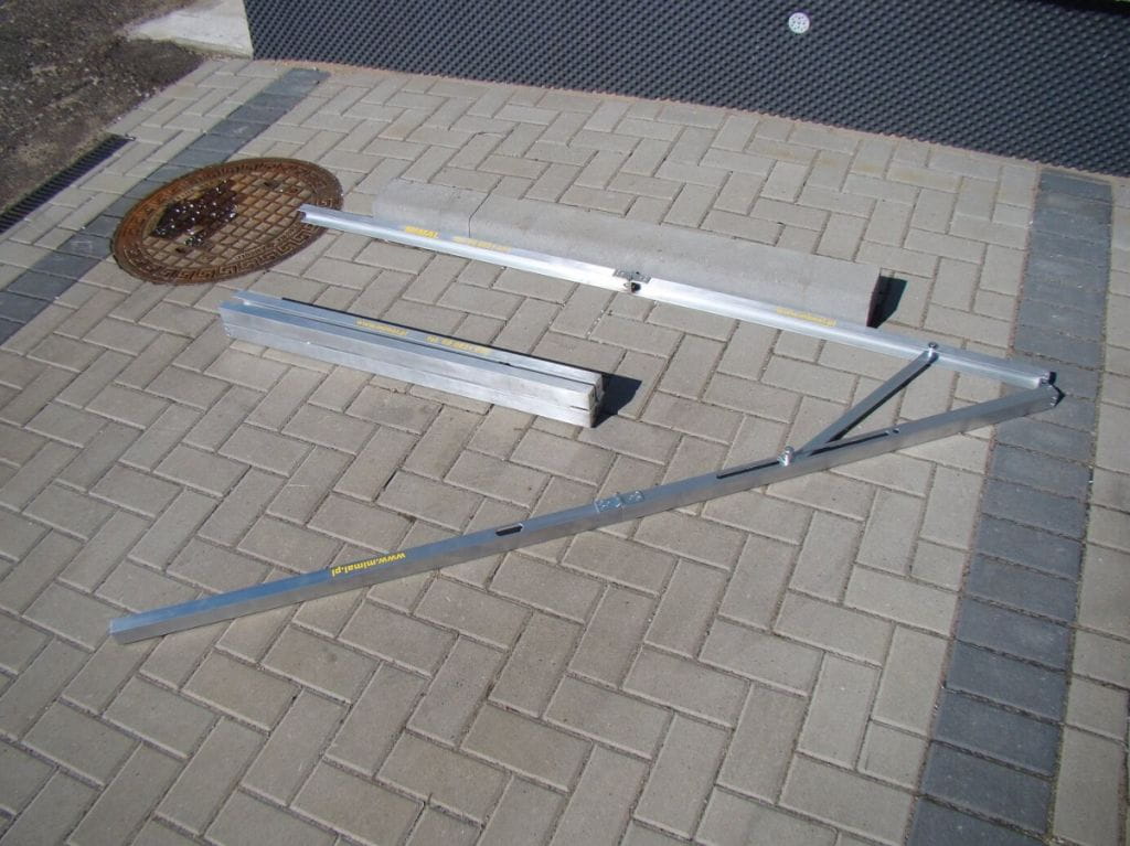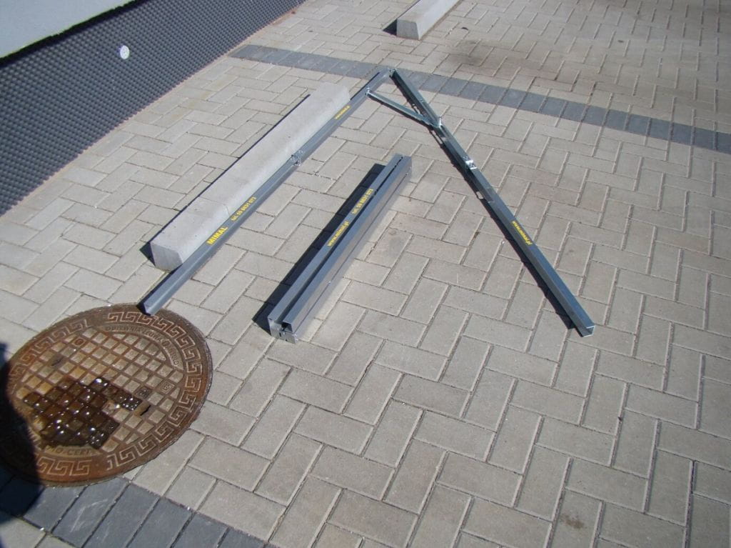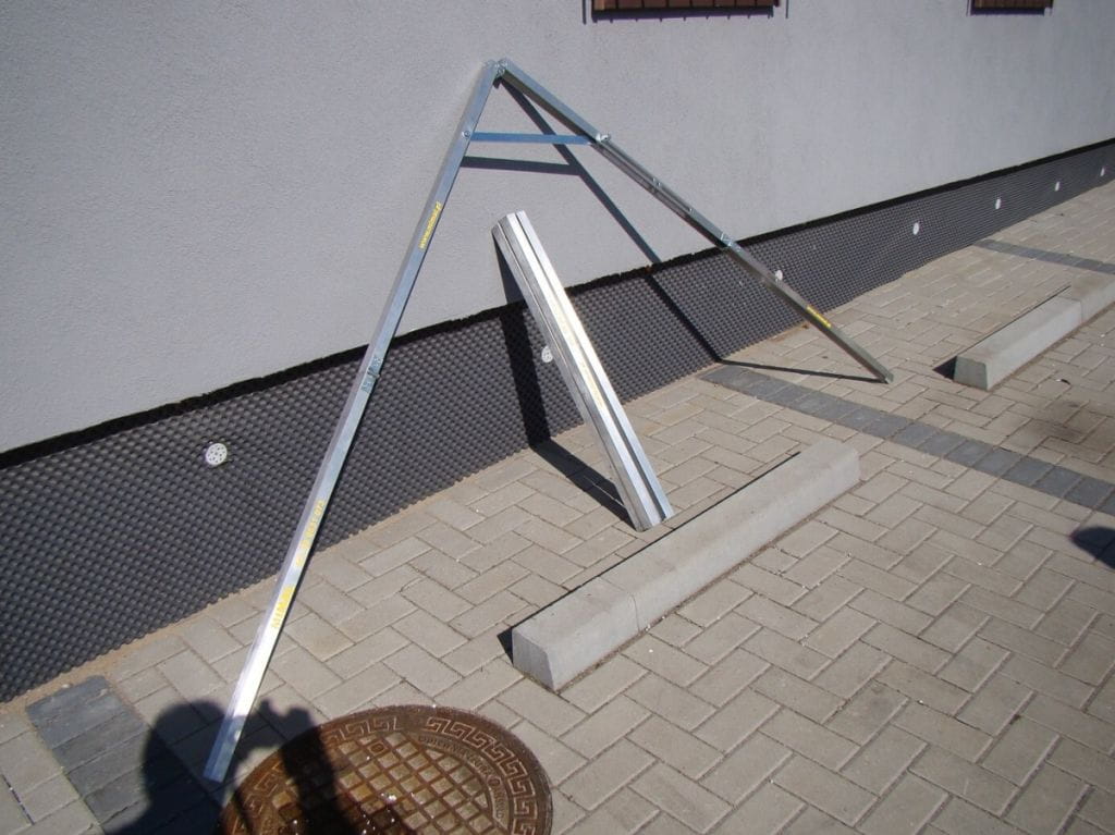 Służy do sprawdzania kąta układanej kostki brukowej bądź innych prac wymagających zachowania odpowiedniego kąta. Urządzenie zostało wykonane z aluminium co zapewnia mu małą wagę.