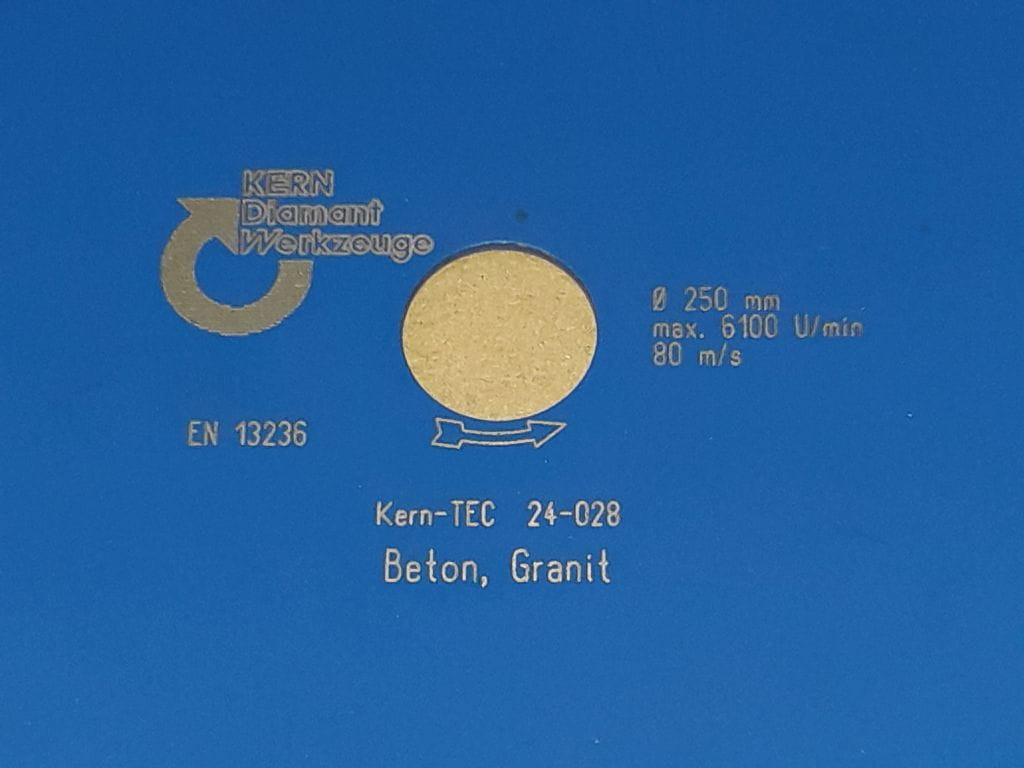 Tarcza diamentowa do granitu, marmuru, dachówek KERN DEUDIAM model TURBO TEC 250mm 25,4mm.