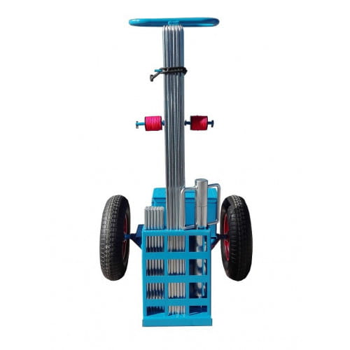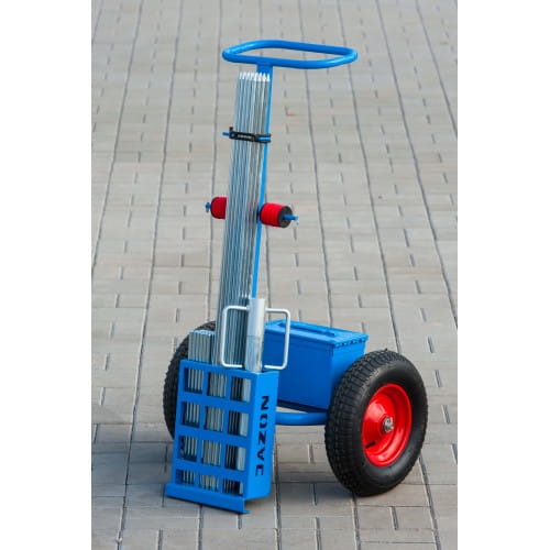 Zestaw jest, dla wygody Użytkownika wyposażony w wózek z uchwytami na akcesoria, dzięki czemu wszystko co potrzebne do wyznaczenia odcinków robót jest dostępne "pod ręką".